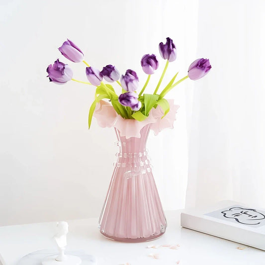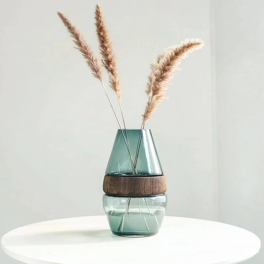 Vase Ovale Transparent avec Anneau en Bois Décoratif