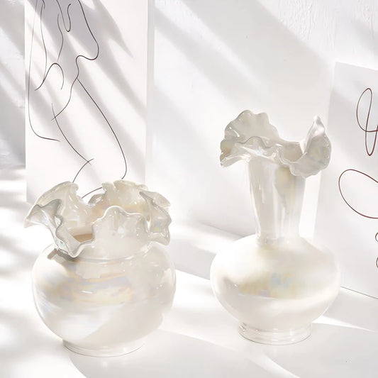 Vase Luxueux Design Raffiné Rond Col Ondulé Nacré