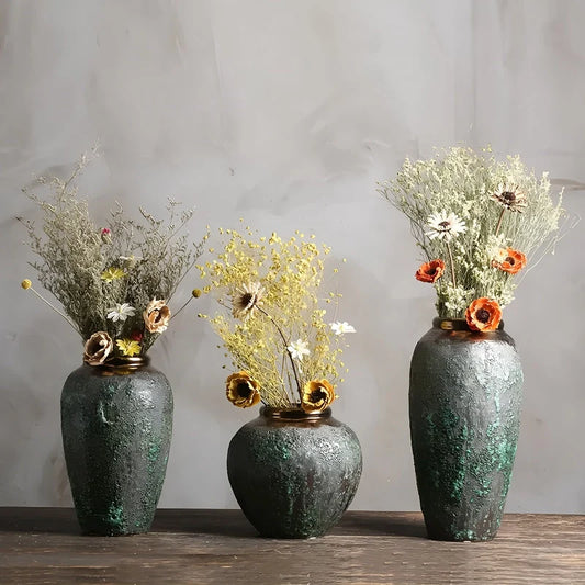 Vase Ovoïde en Grès Vieilli Finition Patinée Col Bronze