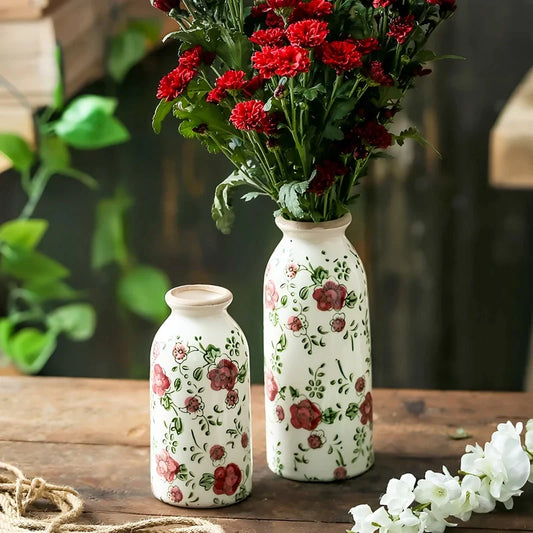 Vase Ancien à Col Dentelé Blanc Moucheté