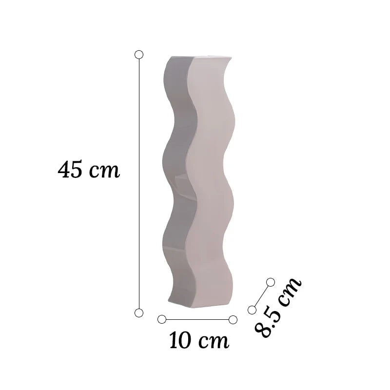 Ce vase en céramique moderne et ondulé de 45 et 53 cm de haut, crée un effet visuel captivant et apporte de la brillance dans chaque intérieur avec ou sans fleurs. Les nuances pastel de gris et de rose s’harmonisent parfaitement avec différents styles de décors.