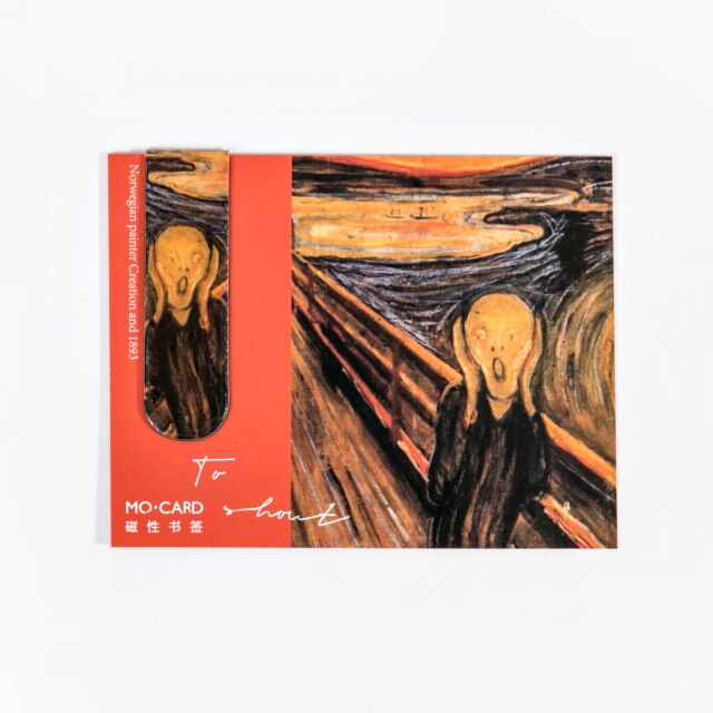Si vous aimez l'art, le marque page de "Le cri" est idéal pour vous. Revenez à vos lectures précédentes grâce à ce petit marque page magnétique orné d'un tableau magnifique d'Edvard Munch. Ce marque page est très à la mode en Europe.