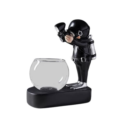 Ce soliflore est composé d’un pot en verre transparent. Quant aux figurines et au socle, ils sont fabriqués à partir de résine délicatement peinte à la main.