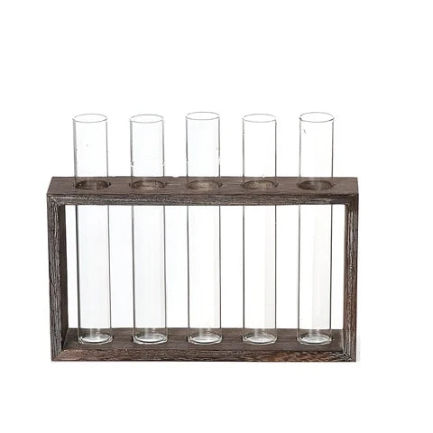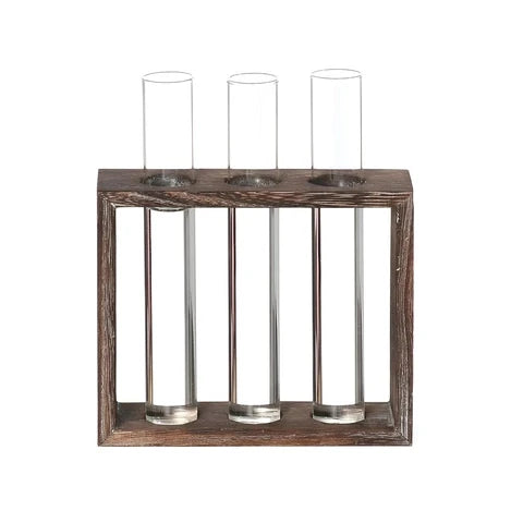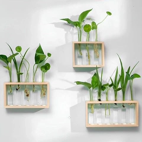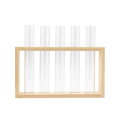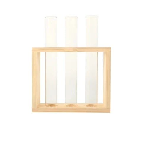 Découvrez un joli encadrement en bois peint ou brut. Ce support met en valeur des tubes de verre borosilicate. Ils sont prêts à accueillir des fleurs et des plantes adaptées à l’hydroponie. Sa forme et sa matière donnent à votre espace une atmosphère apaisante et zen.