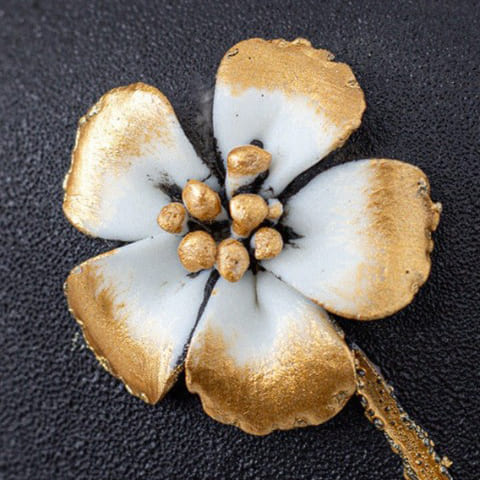 Deuxièmement, parce que ce vase est orné de fleurs délicatement déposées sur sa surface. Ce qui lui apporte un cachet artistique hors du commun grâce aux pétales dorées. Troisièmement, parce qu'il saura se suffire à lui-même grâce à sa forme élancée.