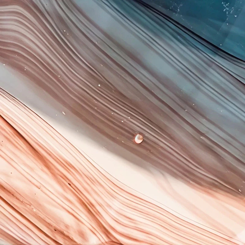 Son verre brillant révèle des variations de bleu et de violet. Il est sublimé par des lignes noires fluides qui donnent du volume et du mouvement à son design raffiné.