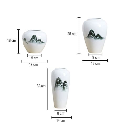 Vous pourrez donc intégrer ces vases chinois peint à la main dans tous les styles de décorations grâce à leur couleur ainsi que leur motif de montagne délicatement dessiné sur leur surface.