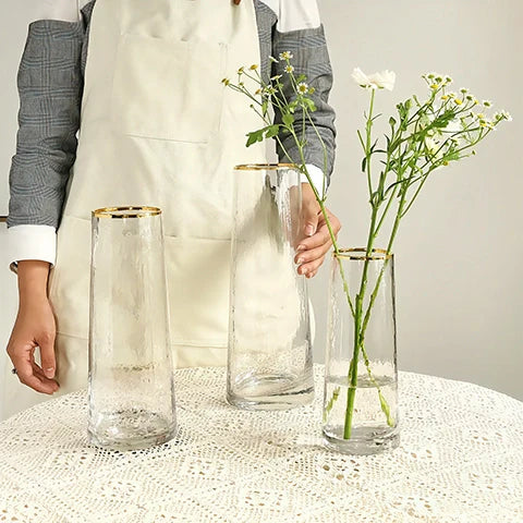 Ce vase conique aux lignes élégantes, en verre opalisé à la finition dorée, donne du cachet à chaque endroit. Placez-le sur une table basse, près d’une baie vitrée, il capte la lumière et ajoute de l'éclat à la pièce.