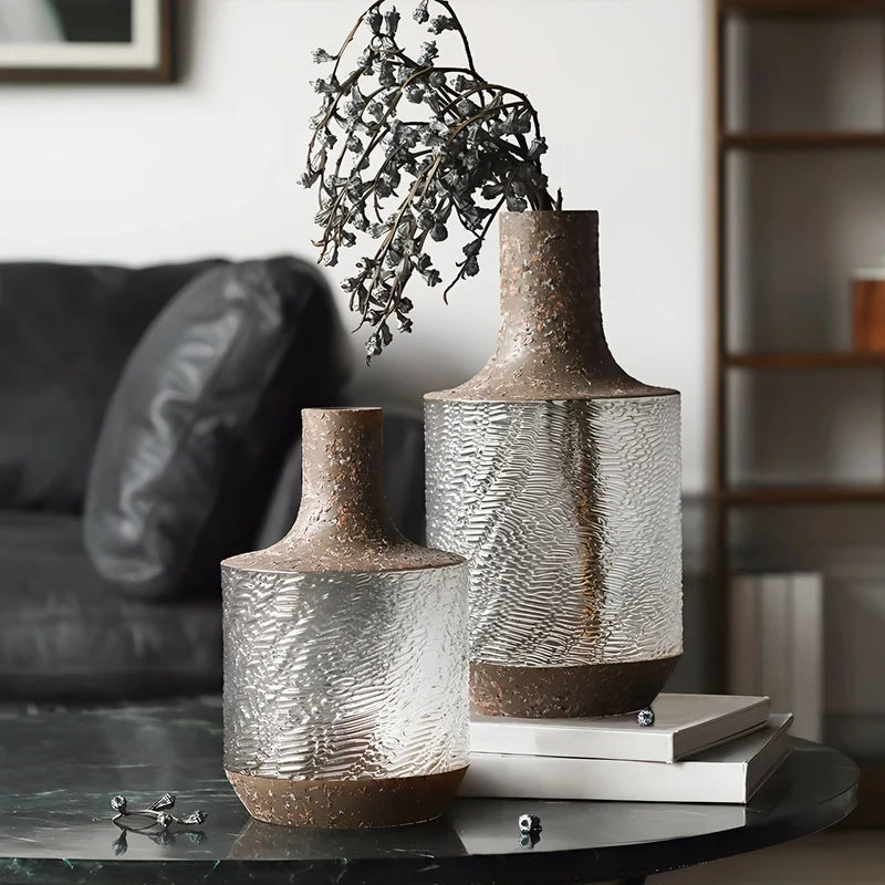 Au centre de votre salon, il ajoute un cadre intemporel à votre décoration. Son corps en verre sodocalcique, associé à une base et un col en céramique marron moucheté créent un effet unique.