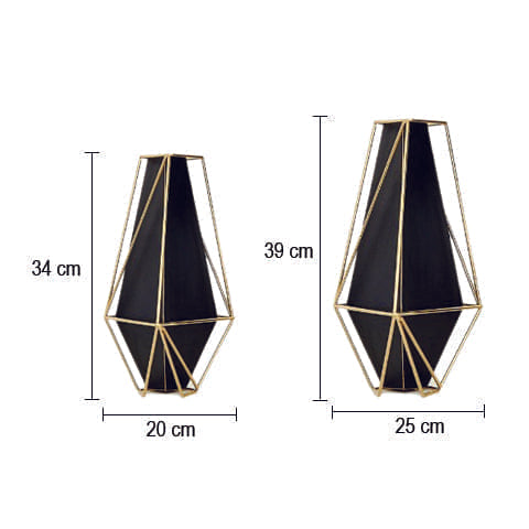 Ces vases noirs raffinés de 34 et 39 cm de haut sont encadrés par du fer doré. Ils trouvent ainsi leur place dans différentes pièces, afin d’apporter une décoration nordique et chic.