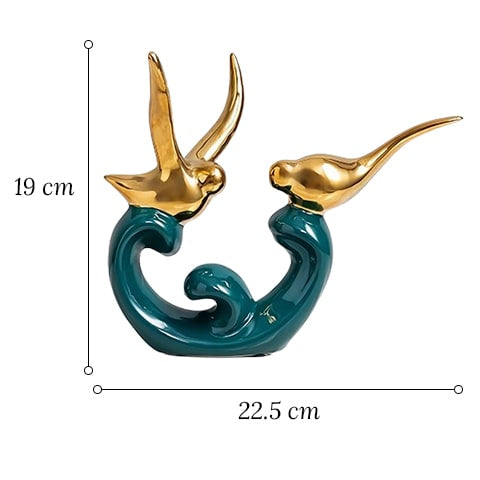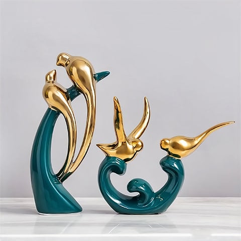 Pour une touche supplémentaire de raffinement, ce vase vert foncé s'accorde avec des accessoires représentant des oiseaux dorés pour une harmonie parfaite dans votre espace de vie.